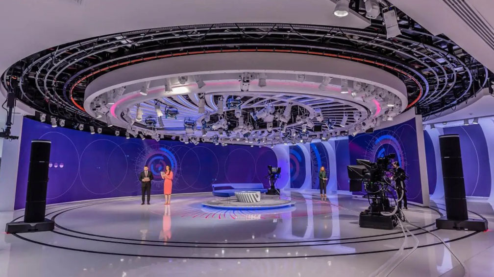 攝影棚 Studio: 利用視訊牆、AR 圖形和自動化控制,革新導播室敘事方式。