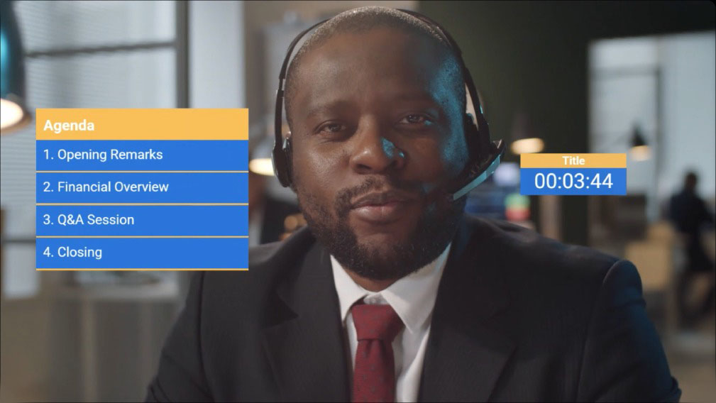 提升會議體驗:透過提供廣播級視覺效果和品牌圖形的解決方案,提升虛擬會議體驗,增強觀眾參與度,強化品牌形象,並透過專業、精緻、令人難忘的虛擬體驗推動業務發展。
