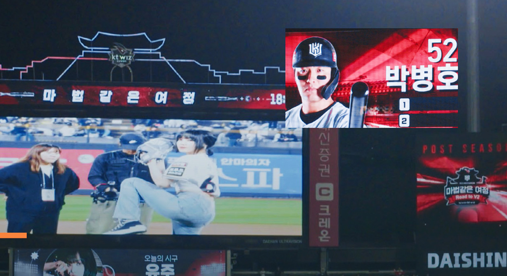 最佳典範南韓.首爾 Suwon KT Wiz Park 體育場館。透過升級過時的視訊技術,打造沉浸式賽事觀賽體驗。這項球場專案整合多項 Vizrt 解決方案: