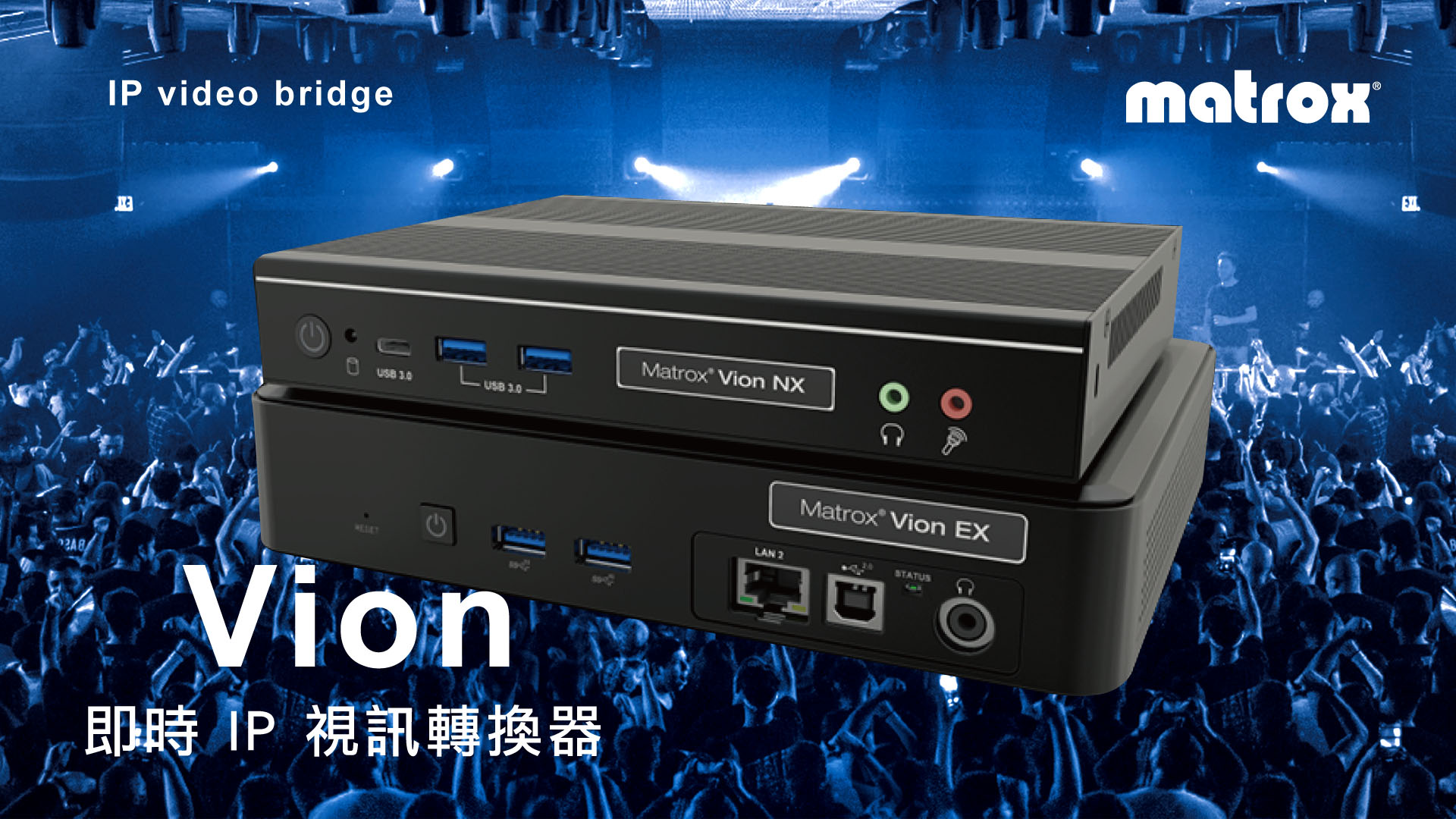 Matrox Vion 迷你型多通道 4K IP 視訊轉換器 Vion EX / Vion NX,專為媒體視訊處理與轉換而設計。 Matrox Vion 提供低延遲,可應用於 H.264、HEVC、JPEG XS 和 NDI 等 IP 視訊格式,靈活地進行多通道編碼、解碼、轉碼和交叉轉換。 Matrox Vion 支援 IPMX 開放標準,與 SMPTE ST 2110-22、SRT、RTSP、RTP 和 MPEG-2 TS 等協定,方便進行各種靈活的路由工作流程, 例如使用 SRT 將 NDI 來源轉碼以透過網路傳輸。 Vion 支援 4:2:2 10 位元和 4:4:4 10 位元編解碼器,可選配 HDMI 2.0 和 12G-SDI 輸入,能夠同時保留桌面和廣播視訊內容的細節, 管理色彩空間轉換、串流媒體協定和位元速率,並傳輸多個並發串流,使其成為現場製作、協同作業與本地/雲端工作流程的理想選擇。