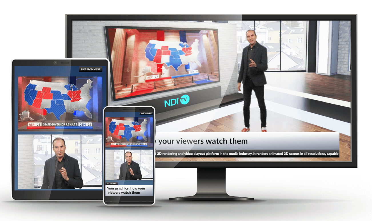 更好的 Vizrt 自適應圖形功能,提升您在 Viz Engine 投資回報。 自適應圖形功能可自動調整至目標平台所需的畫面比例與解析度, 確保一致的頻道包裝與流暢的體驗。