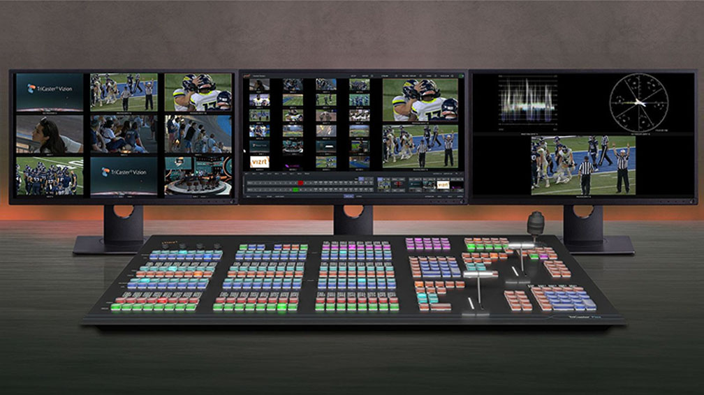 Vizrt/NewTek 開發的 TriCaster 全媒體廣播級多M/E製作導播系統,適用於專業影音製作人、廣播媒體、網路直播和影音內容創作者。 TriCaster 提供了一整套完整的專業媒體製播功能,能夠處理各種政府與公司行號大小型會議、講演活動、網路直播、線上培訓與體育賽事各種影音內容製作。 TriCaster 主要特點有:多機製作導播:支援多攝影機的即時切換、適合大型活動的直播製作、具有高品質圖形與視訊特效、內建虛擬影棚、媒體串流、錄製與發布、 靈活的輸入和輸出:支援多格式,能適應不同的製作需求。 TriCaster 是一個強大且靈活的視訊製作解決方案,能滿足各種規模的製作需求,從小型網路直播、大型體育賽事多機直播,到廣播級的專業電視媒體製作。