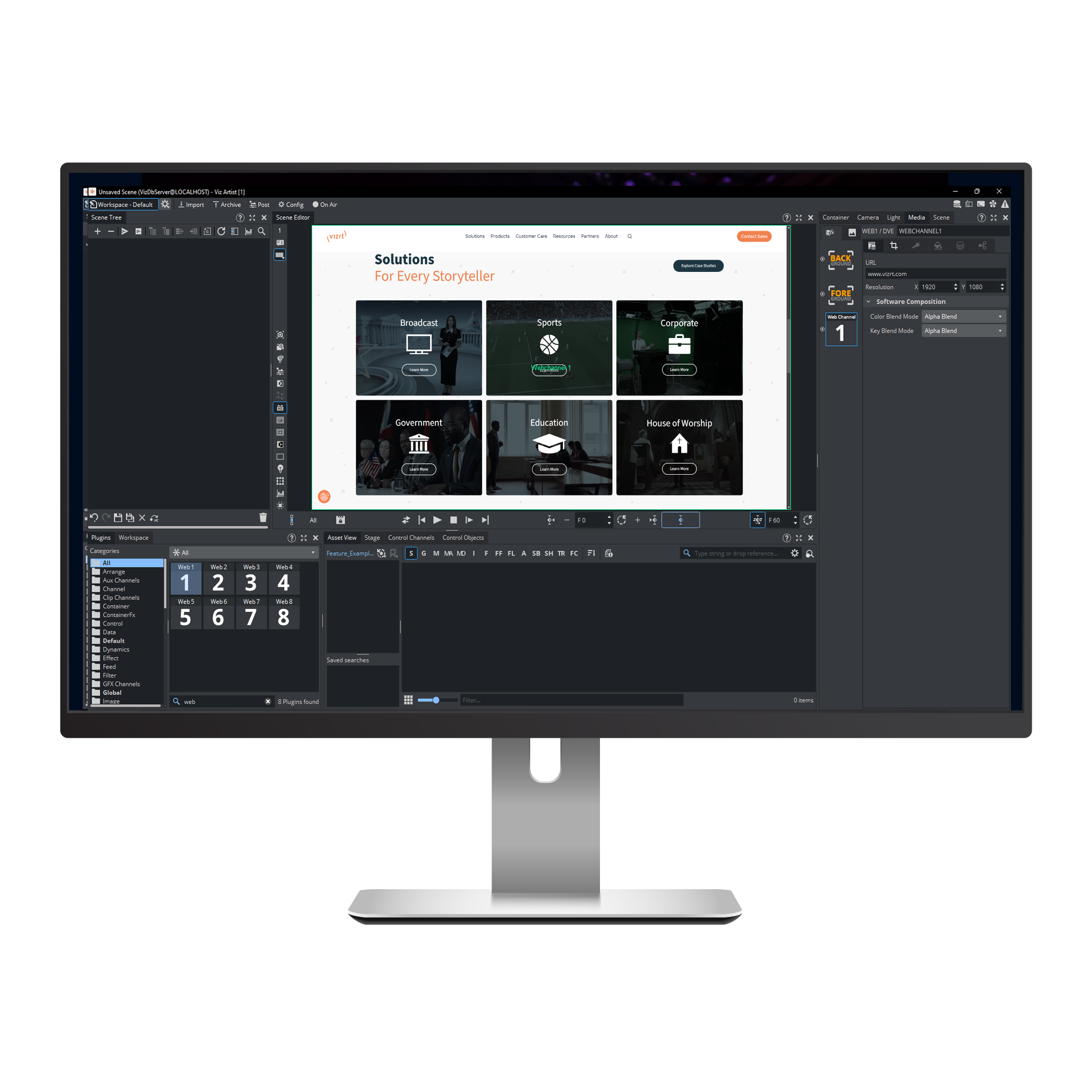Vizrt Viz Engine 具有多螢自適應控播功能,適合網路新媒體製作完美的影音節目,滿足各種觀看設備。